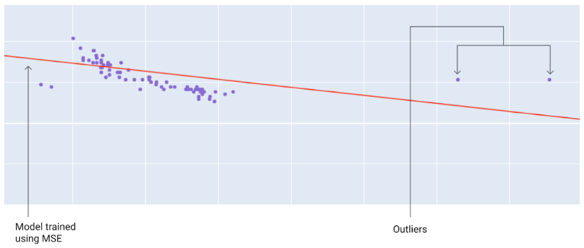 MSE:模型更接近离群值,但与大多数其他数据点的距离更远。